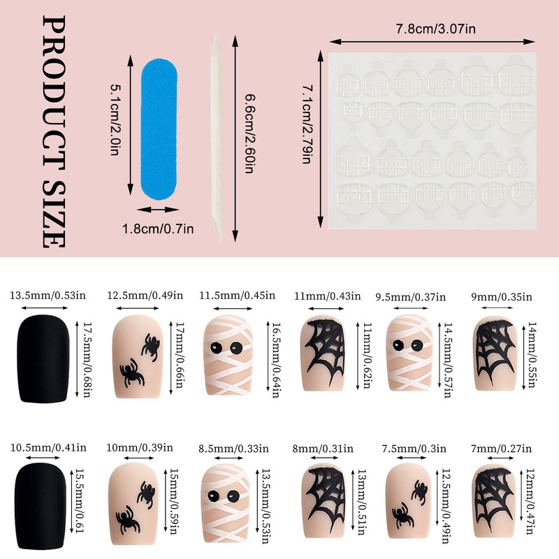 - Zuverlässiges Acrylmaterial:Diese Halloween-Press-On-Nägel bestehen aus robustem Acryl, Dadurch bleiben sie lange intakt und sind bei festlichen Aktivitäten widerstandsfähig gegen Beschädigungen.
