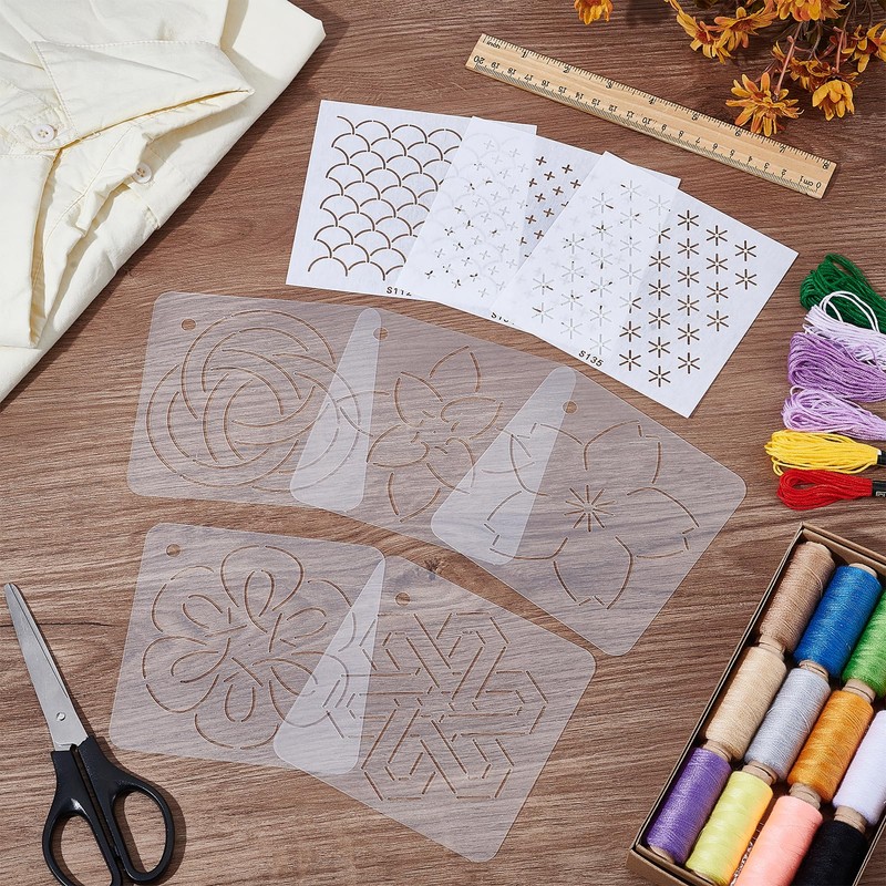 NICENEEDED 8 PCS Plastic Sashiko Stencils 4.6 x 4.6 Inch, Drawing Line Template for Sewing Hand Quilting and Embroidery, Sashiko Embroidery Pattern Stencil Geometric Sashiko Pattern Template