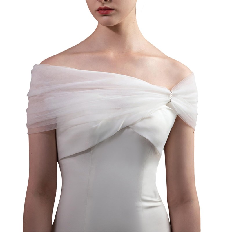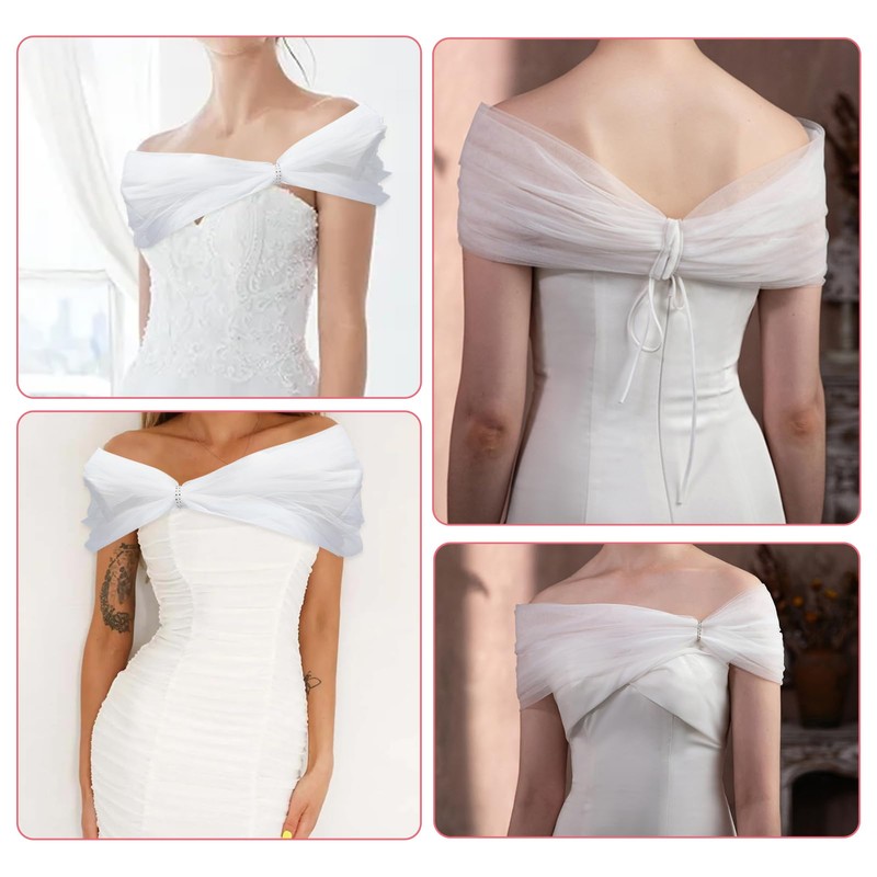 NICENEEDED Abnehmbarer Brautschal Aus Tüll Weiße Hochzeitsträger Puffkleid Schal Ärmelschals Abnehmbares Schulter Cover Up Accessoire Für Hochzeitskostüme