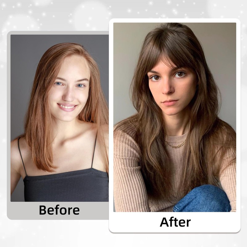 - SOLUTION FOR HAIR CONCERNS: Whether dealing with hair loss or wanting to cover grays, our bangs offer a discreet solution. The innovative 360-degree 3D design ensures they integrate naturally with your hair, providing a realistic look unlike traditional bangs.