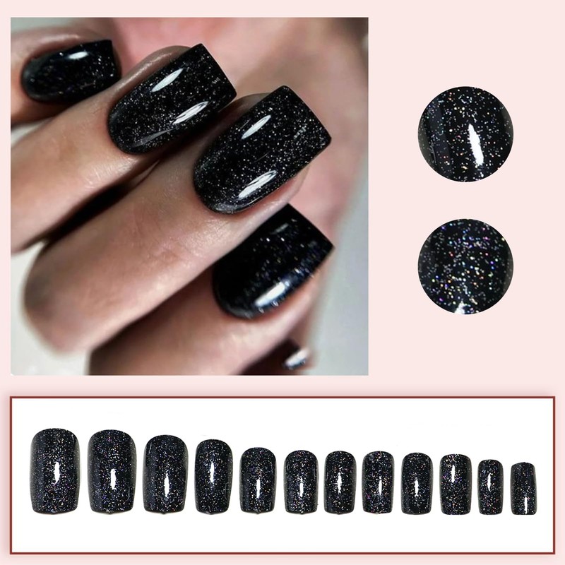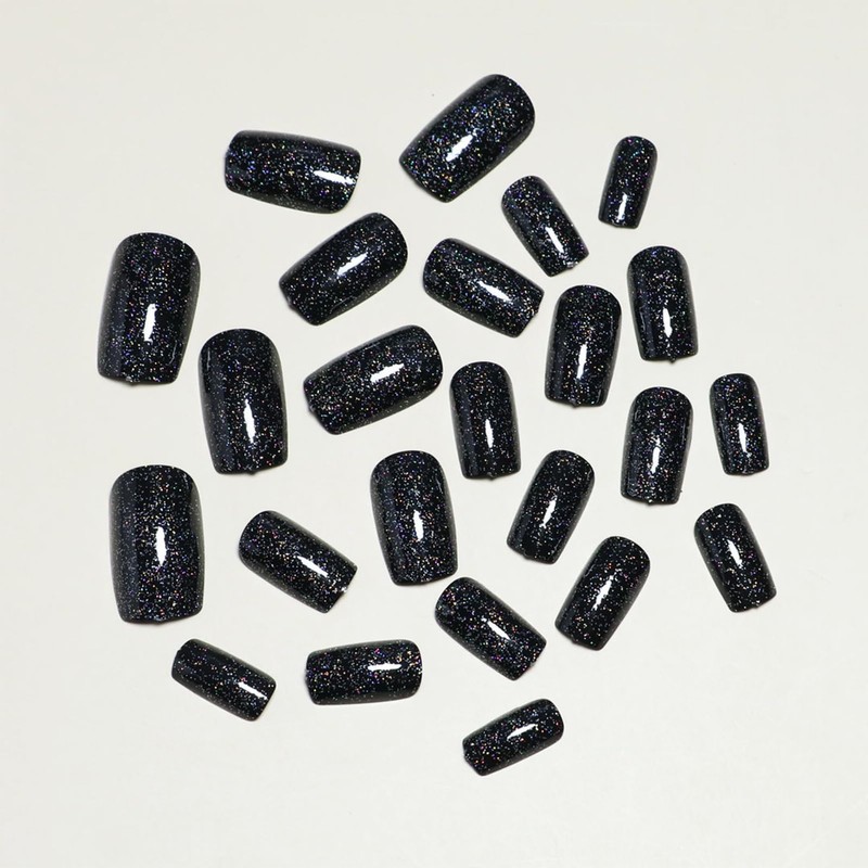 NICENEEDED Pack of 24 Black Press-on Nails, Short Square Artificial Nails, Plain Artificial Nails, Shiny Shiny Glue for Nails