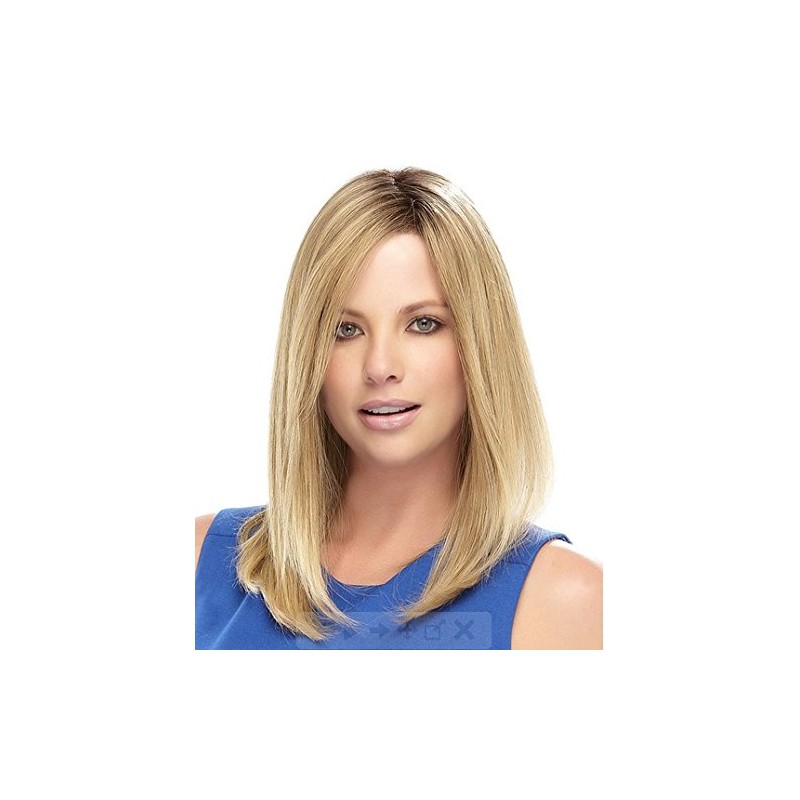 NiceToBuy Umeet Middle/Shoulder Length Ombre Blonde Dark Brown Roots Medium Length Straight Synthetic Hair Middle Part Wigs for Women