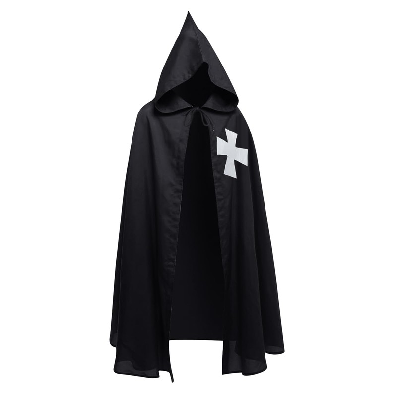 - ▶ Design: large hood, rope closure, white red cross on the front. Neutral medieval knight costume. It adds a dramatic touch to the look and is perfect for various characters such as witches, vampires, kings, wizards, gothics and more.