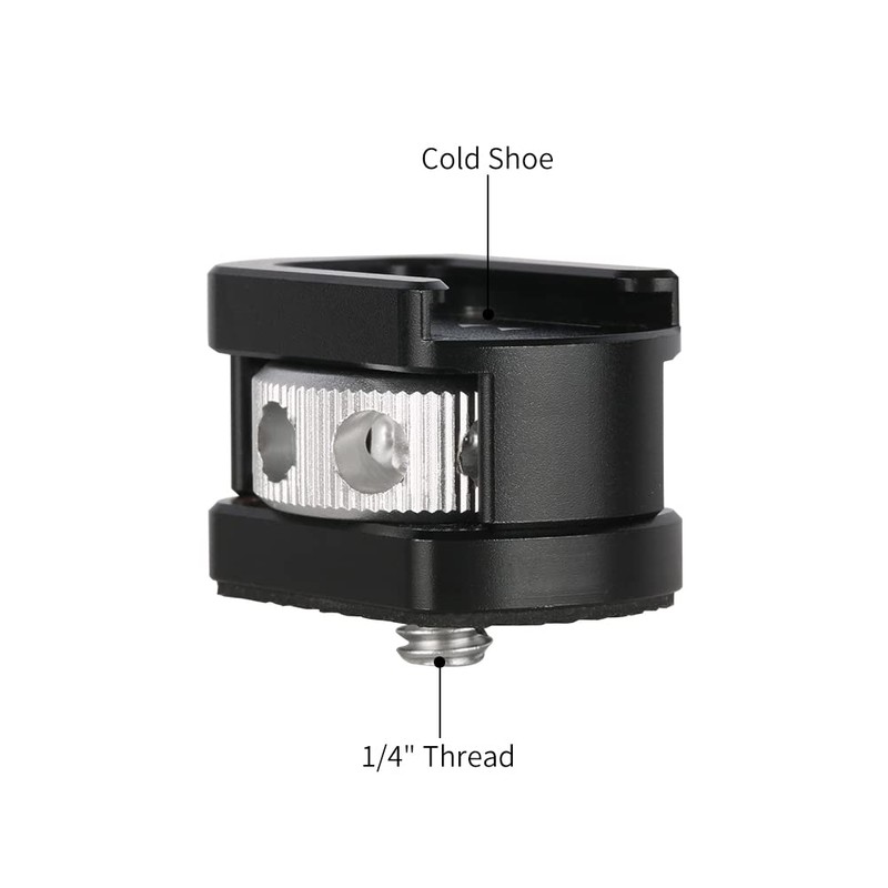 - Easy mount cold shoe for standard 1/4’’ threaded hole. Very flexible to attach on any video rig accessories like camera cage, top handle grip, cheese plate