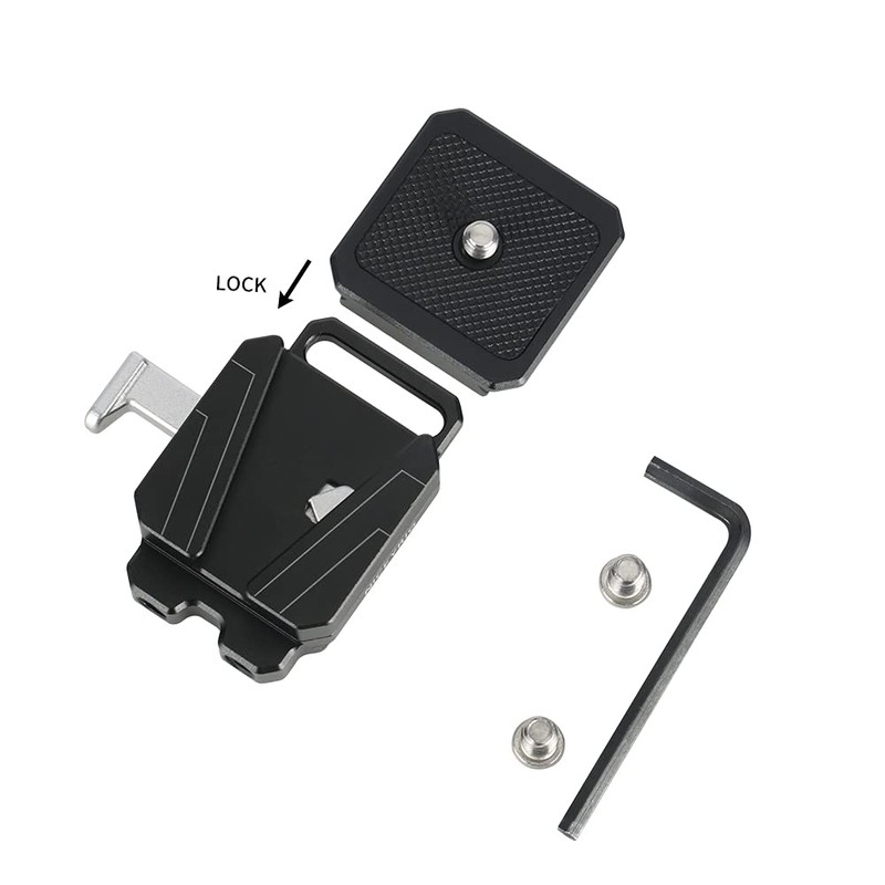 • V-Lock part (male) is provided with the top plate, which comes with a 1/4’’-20 screw for attachments like mirrorless camera, video light, microphone, etc. Anti-twist and Anti-scratch with the rubber pads.
