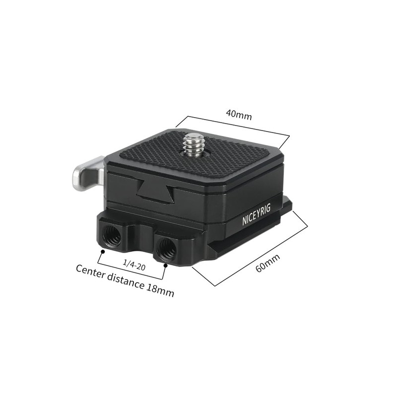 • Features two 1/4 threads on the bottom side with center distance 18mm, optional for NICEYRIG 15MM Dual Rod Clamp 032