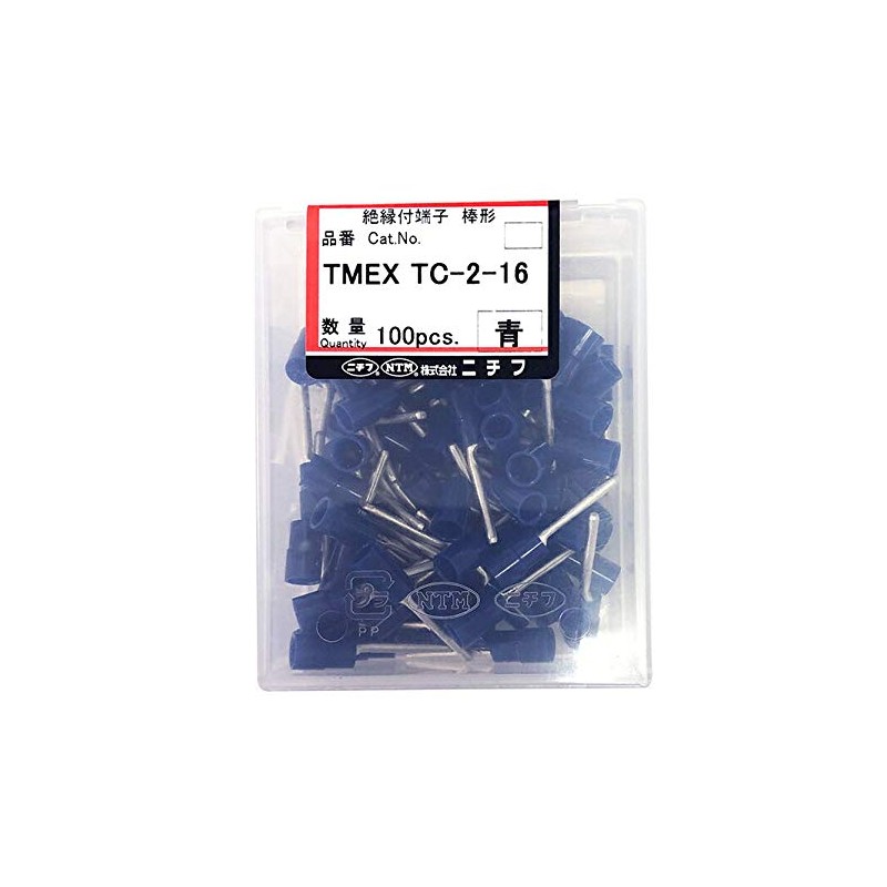 NICHIFU TERMINAL INDUSTRIAL TMEX TC-2-16-BLU Eco Friendly Crimp Terminal with Insulated Coating (TC-Type) Rod Shape, Blue