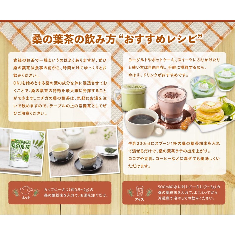- Name: Japanese mulberry leaf tea. Ingredients: Mulberry (from Kyushu)