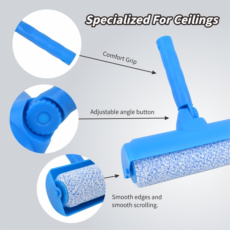 • Shield: Our ceiling paint roller come with a serviceable blue plastic paint guard to reduce the risk of paint spills;