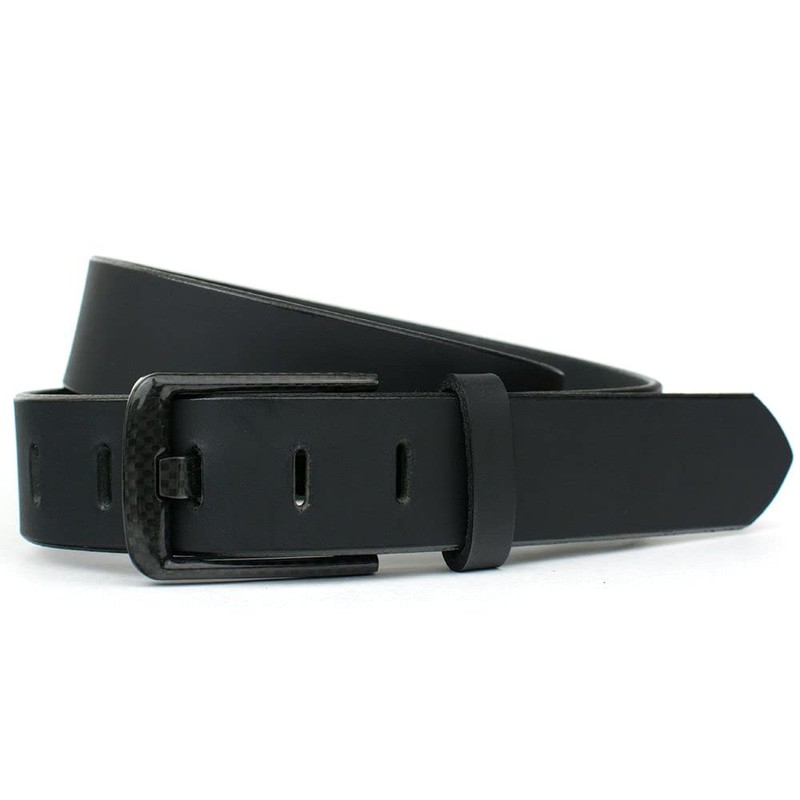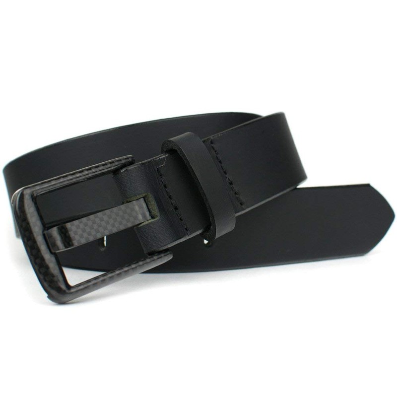 • CLASSIC TRADITIONAL STYLE: Versatile, masculine and fashionable, this men's leather belt is paired with a super unique carbon fiber wide pin buckle. Looks great with jeans, khakis, casual or dress pants. Strap width is 1½ inches wide.