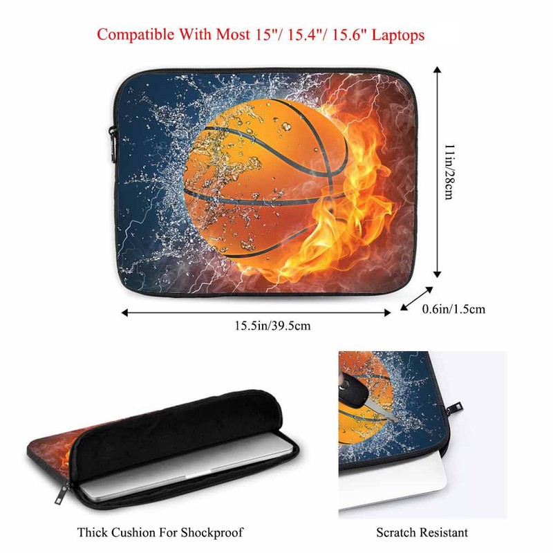Nicokee Laptop Sleeve Bag 15 15.4 15.6 Inch,Basketball Ball in Fire and Water Ball Flame Protective Polyester Computer Cases Laptop Cover Briefcase Bag Tablet Travel Cover