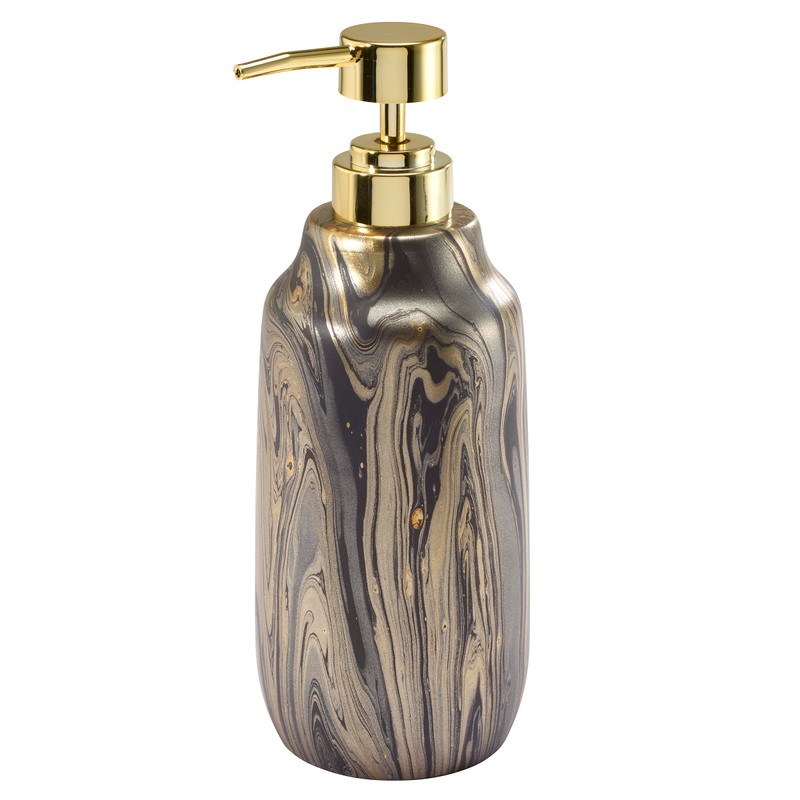 Nicole Miller - Bathroom Set, 2pc Resin Accessories, Toothbrush & Lotion Pump/Soap Dispenser (Harper Collection, Black/Gold)