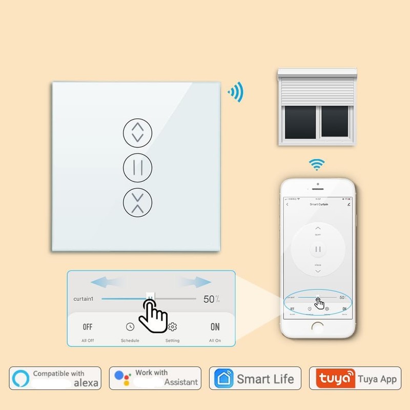 - CONVENIENT CONTROL Use the SmartLife app to control your shutters remotely even when you are not at home. (Note: connect the device to the 2.4GHz network when you use it for the first time)