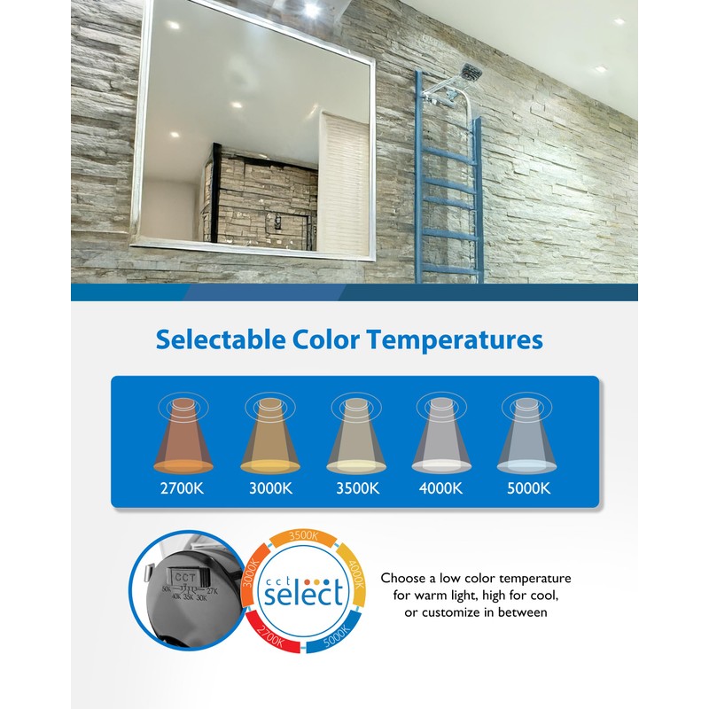 - Five selectable color temperatures (2700K, 3000K, 3500K, 4000K, and 5000K)