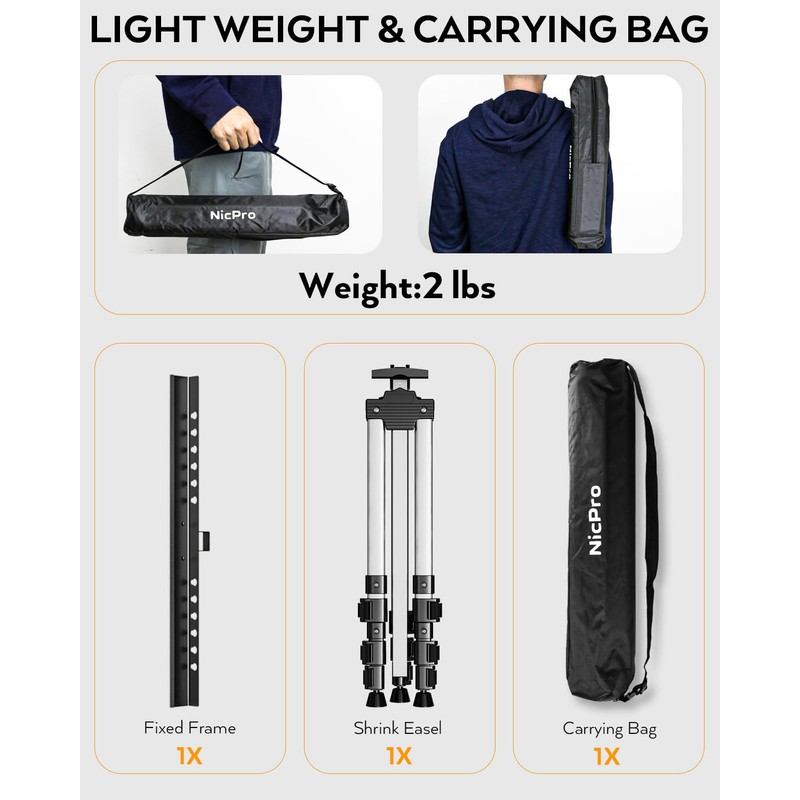 - FOLDABLE & PORTABLE. The silver artist easel folds to 17 inches only and weight only 2 pounds! With an anti-dust carrying bag, portable for transportation, and convenient for saving space when not used it
