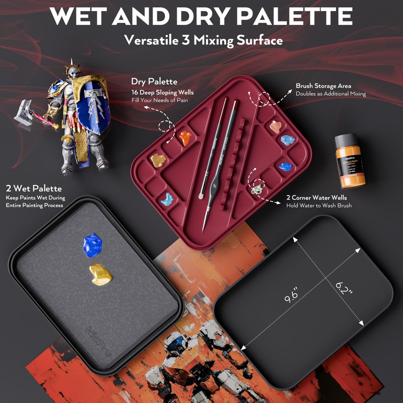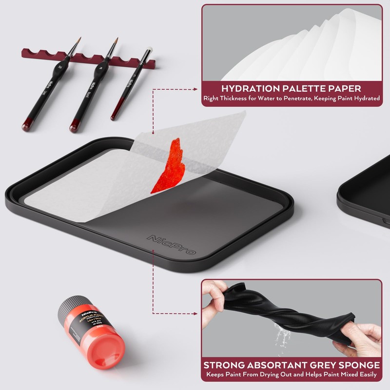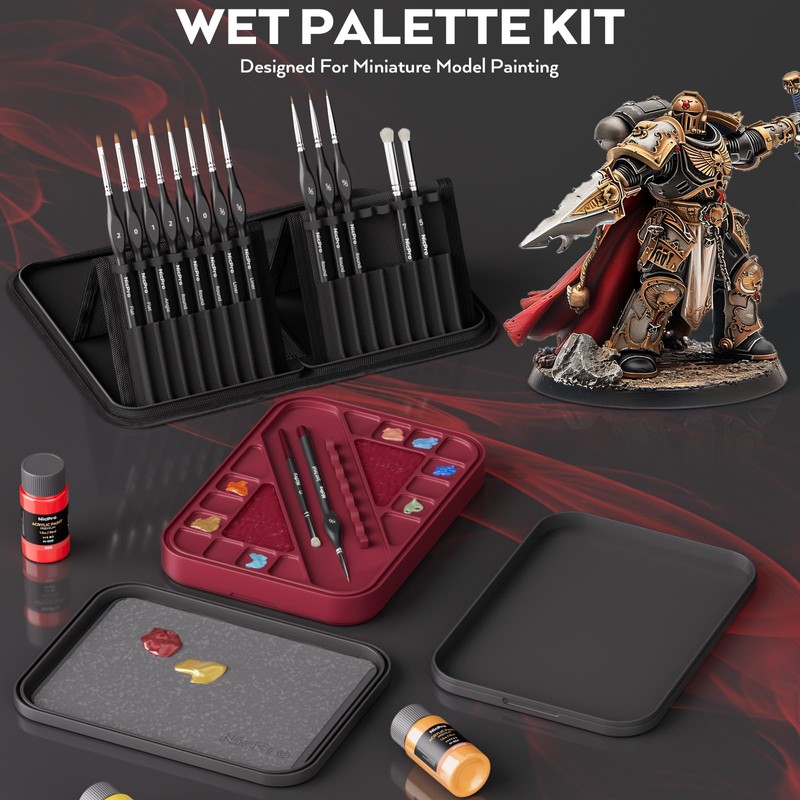 Nicpro Professional Miniature Painting Kit, Stay Wet Palette & 16PCS Detail Paint Brushes Drybrush with Nylon Bag, 100PCS Pallet Paper, 4PCS Sponge, Mixing Paint Saver Palette for Miniature Model