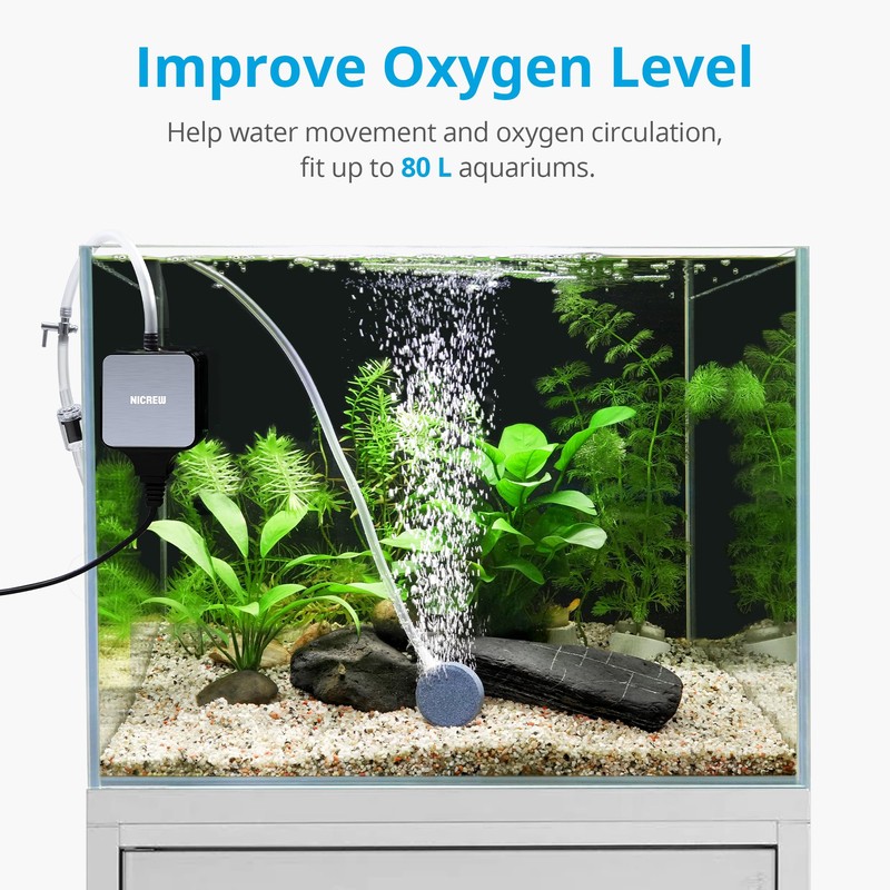 - Energy-Efficient: Delivers 36 L/H of air output with a mere 1.5 W power consumption, ideal for small aquariums up to 80 L