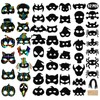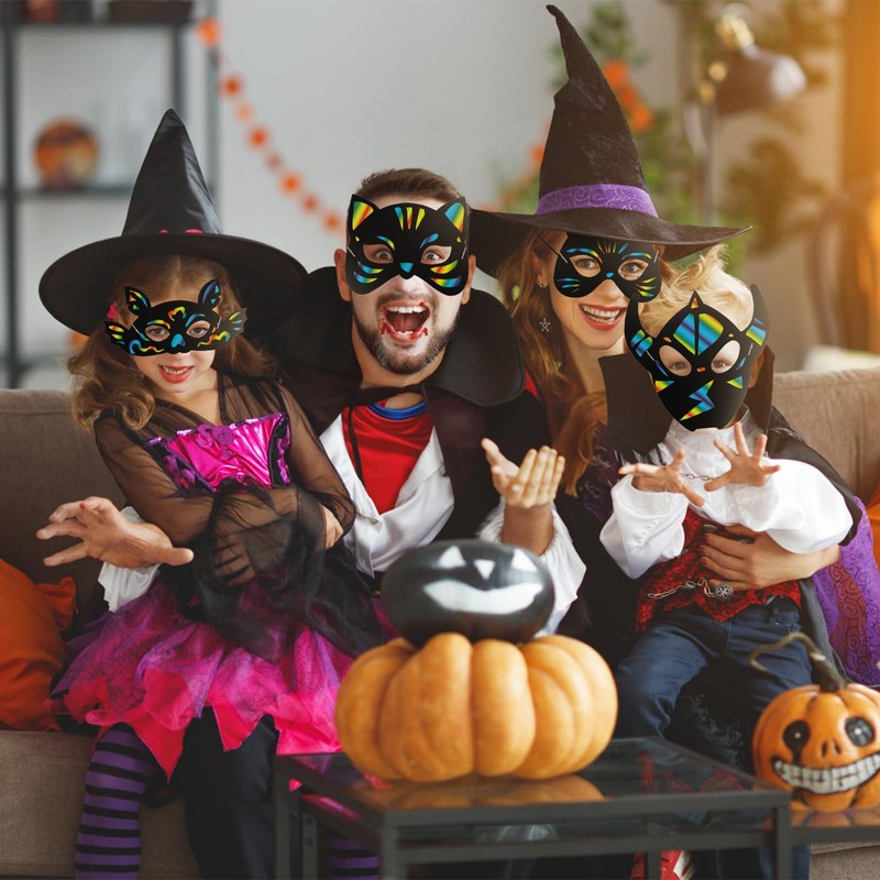 Nicunom 52 PCS Halloween Rainbow Scratch Mask, Magic Scratch Paper Mask Art Craft Kit for Kids Birthday Cosplay Decoration, Bat Pumpkin Skull Zombie Witch Pirate Halloween Party Favor Supplies