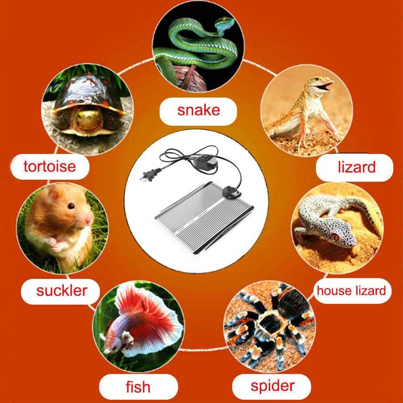 - 🐍[SUITABLE FOR MOST REPTILE]: Under tank warmer pad is ideal for tortoise, snakes, lizard, gecko, hermit crab, turtle, spider, insect breeding, and other amphibians that require belly heat, suitable for all kinds of glass fish tank, turtle tank bottom, plastic boxes, acrylic boxes, reptile wooden boxes, also perfect for germination, homebrewing;