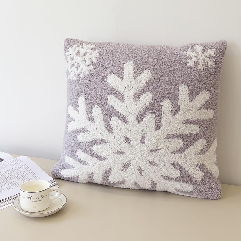 NIDITW Set of 2 Ultra Soft Grey Snowflake Throw Pillow Cover Microfiber Christmas Cushion Case Cozy Fluffy Pillowcase Square Decor for Home Sofa Couch 18x18 Inches (1-Grey Snowflake)