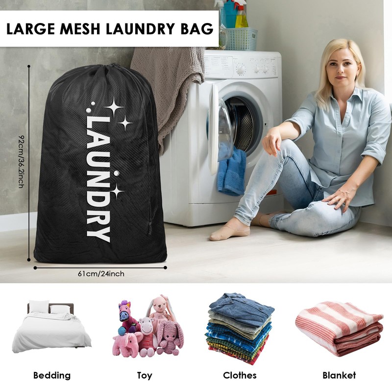 - Multi-Purpose: This mesh bags drawsting is enough large for washing blankets, sleeping bags, pillows, blankets, quilts, duvets, sweaters, towels etc. It can be not only as laundry bag for camp, laundry bag for dorm, laundry hamper bag, travel laundry bag, but also sleeping bag storage sack, mesh toy bags, mesh ball bag etc.