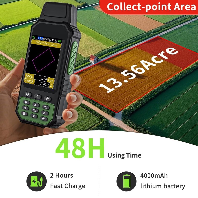 - HIGH PRECISION ACCURACY: Great support 4 navigation satellite system,GPS+BEIDOU+GLONASS+QZSS ,strong satellite signal,area measurement error in 0.002 acres