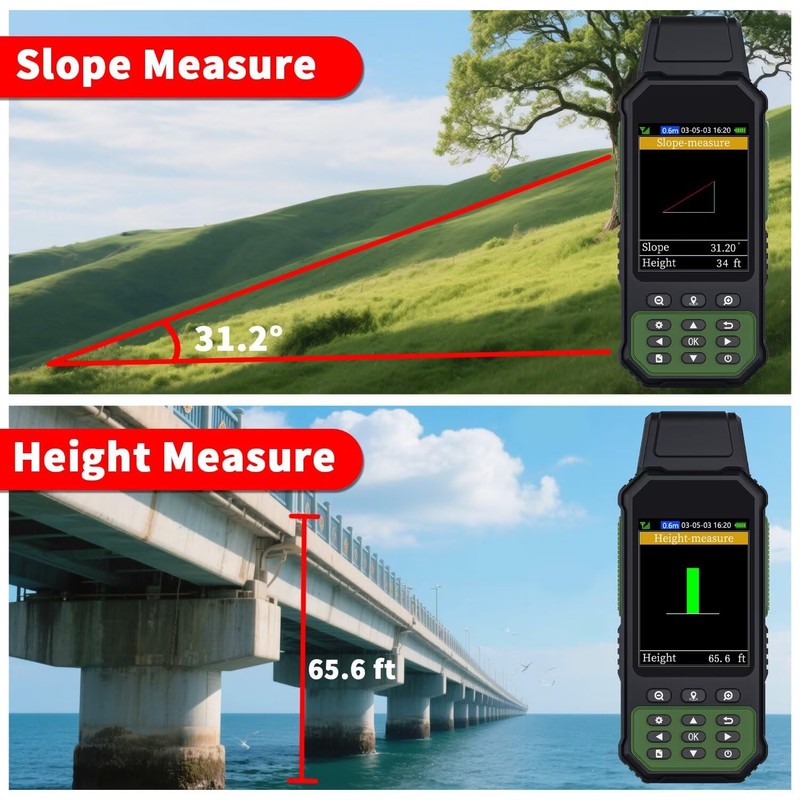 - 5 IN 1 MEASUREMENT: The area of any terrain (gardens, parking lots, pastures and flat lands) can be measured, curve line distance and slope can be measured