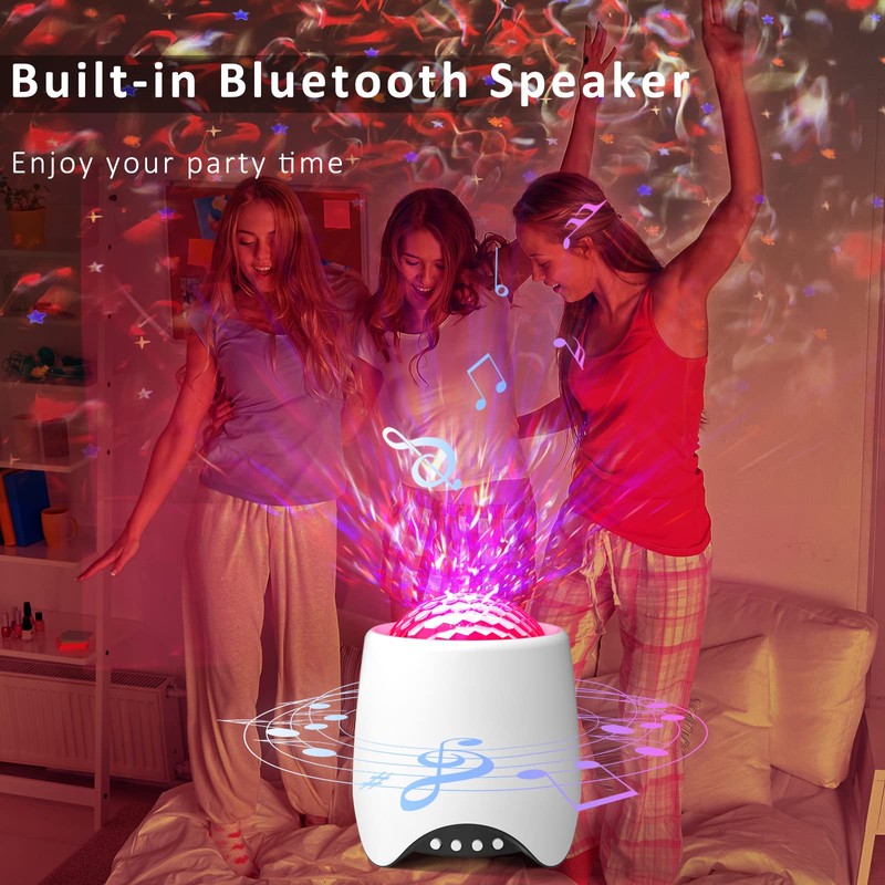 • [Built-in Music Speaker] The night sky light projector is equipped with built-in Bluetooth stereo speaker. You can connect it via Bluetooth to enjoy music. In the music mode, the light of the star projector will change with the rhythm of the music or the sound of clapping hands.