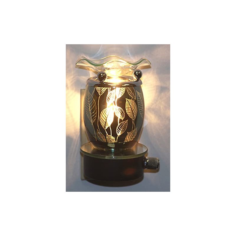 Night Light Silver Leaf Aroma Oil Warmer Plug in Lamp_JEB 042 Silver Plus Jane Bernard Fragrance Oil