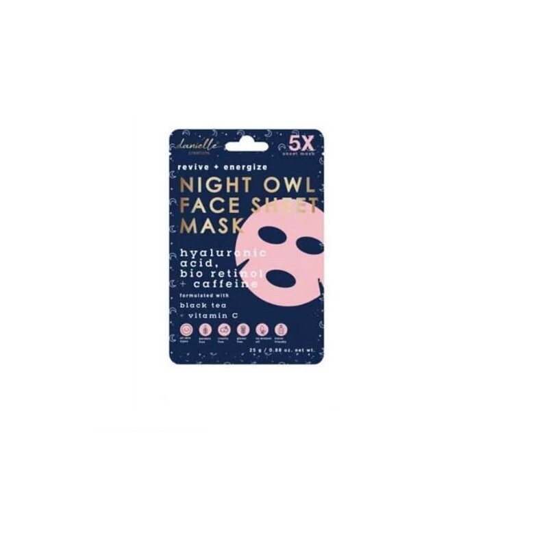 - Revive and energise your skin with Danielle Creations Pack of 5 Night Owl Face Sheet Masks.