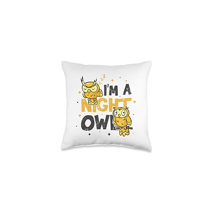 Night Owl Snooze Design Night Person Morning Grouch Later Riser Sleep Pajama Lazy Night Owl Throw Pillow, 16x16, Multicolor
