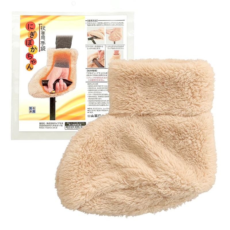 Nigipoka-chan Cyprus Gloves for Cane Cover Cold Protection, beige