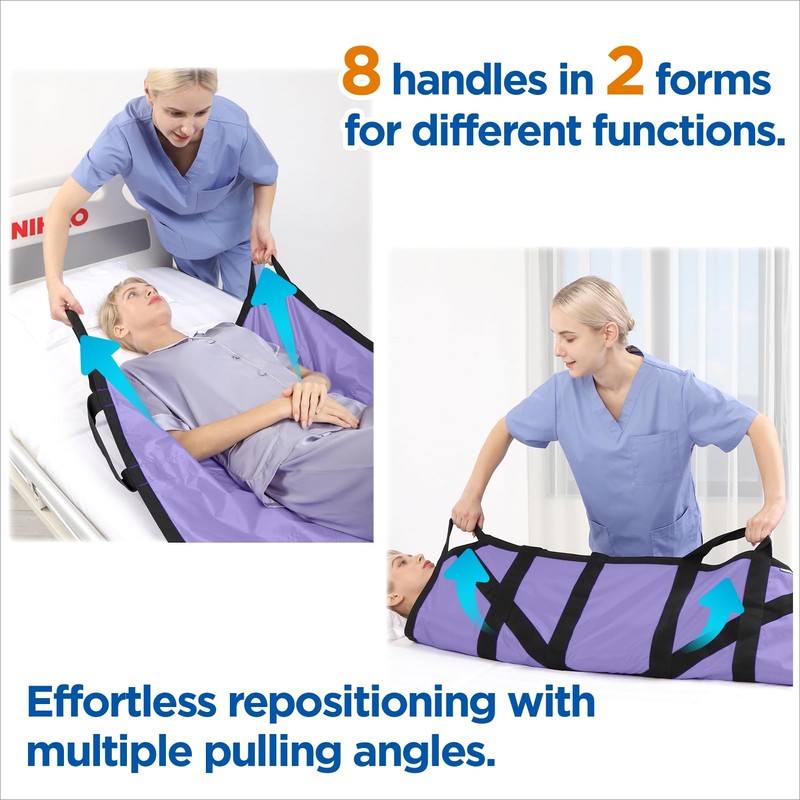 - 【8 enhanced handles in 2 types to meet diverse positioning needs】Allowing the caregivers to assist from any angle. It reduces the physical effort by 90% for caregivers, relieving the overall strain on them. And significant improve the efficiency of home care.