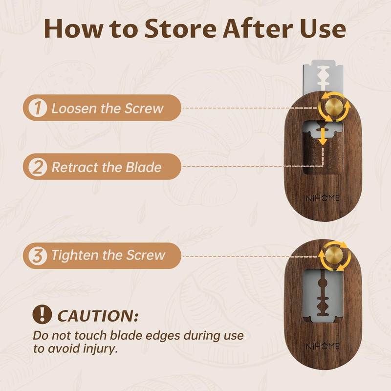 NiHome Bread Lame with Extractable Blade and Magnetic Back, Push-Pull Design for Secure Blade Locking, Easy-to-Use Walnut Wood Handle, Perfect for Dough Scoring, Bread, Pastries, and Food Cutting