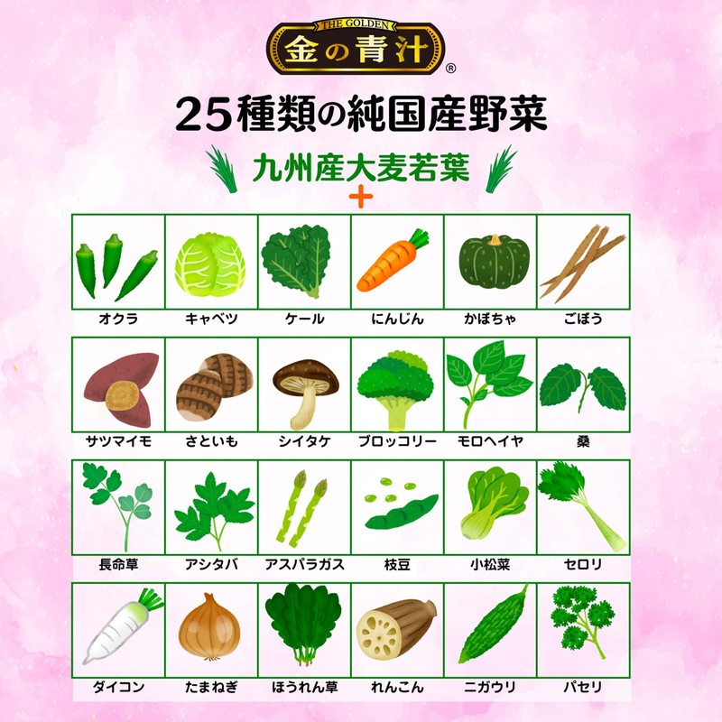 - 【25種類の野菜をぎゅっと凝縮!】九州の農家さんが心を込めて育てた大麦若葉をはじめとした25種の野菜をぎゅっと凝縮!安心・安全の純国産です。手軽に野菜を摂取したい方にオススメです。本品に使用している大麦若葉は栽培期間中に農薬を一切使用しておりません。