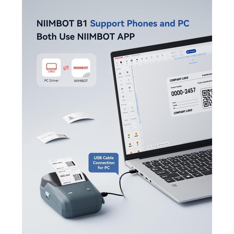 - 【Easy to Use】The B1 bluetooth label printer support iOS, Android. Download the "NIIMBOT"app, select the printer model B1 from the app, and connect printer. USB cable connection for PC, need to download driver form Niimbot brand official website, please see the details page video description.