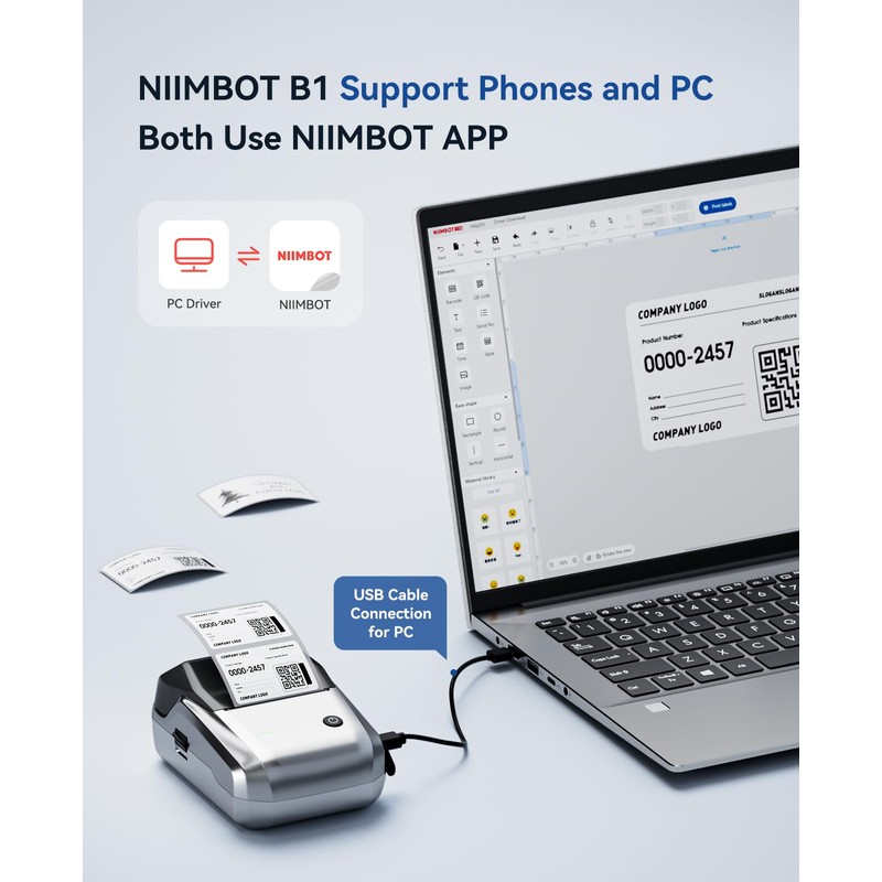 - 【Easy to Use】The B1 bluetooth label printer support iOS, Android. Download the "NIIMBOT"app, select the printer model B1 from the app, and connect printer. USB cable connection for PC, need to download driver form Niimbot brand official website, please see the details page video description.
