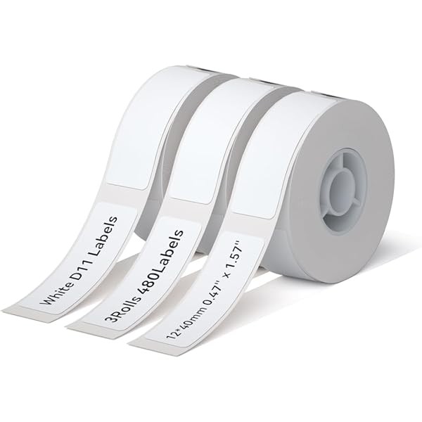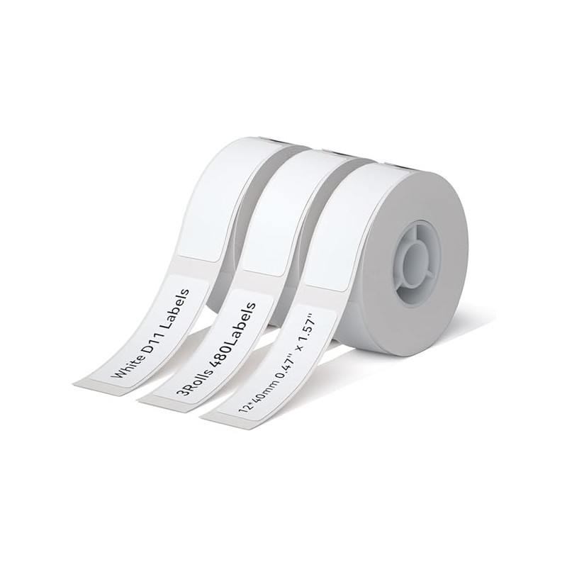 NIIMBOT D11 Label Maker Tape Adhesive White Label Paper 0.47" X 1.57" (12 X 40mm) 160 Labels/Roll, Compatible for NIIMBOT D11 D110 Printer, Thermal Paper Black on White, 3-Roll