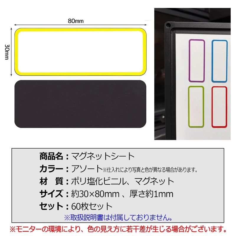 • Sticks to whiteboards and refrigerators. A set of 60 magnetic labels that are approximately 0.04 inch (1 mm) thick. Assorted color label sheets! It can be used in a wide range of occasions such as meetings and classes