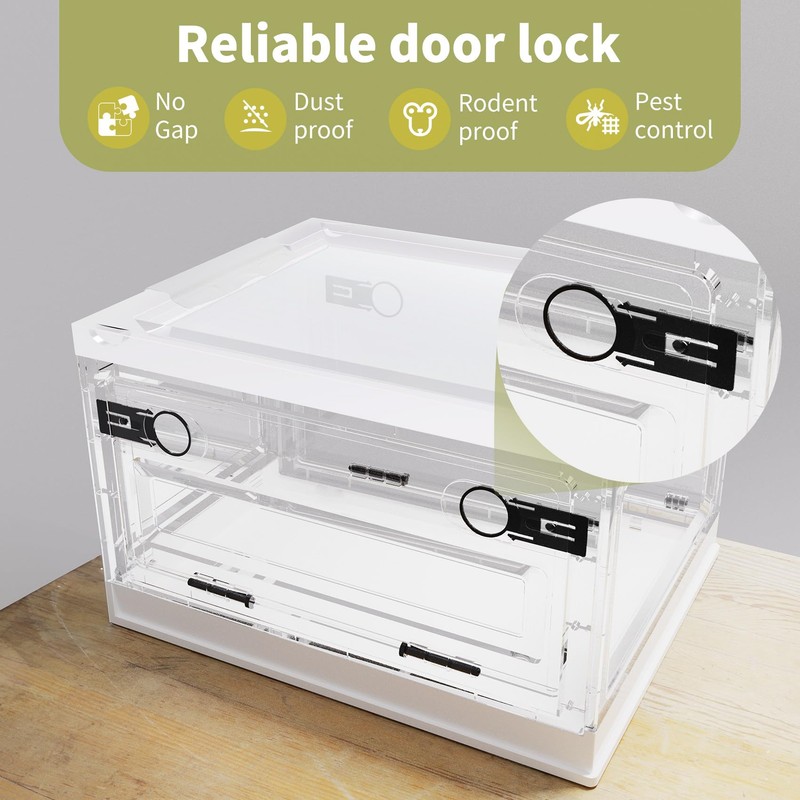- 【Pest-Proof & Durable】: The latch-sealing design minimizes dust and pests from getting inside.The foldable storage bin with doors made from PP material, this storage bin is durable, corrosion-resistant, easy to clean, and safe for the human body. It can be used in the kitchen for storing spices or in the bathroom for organizing cleaning supplies.
