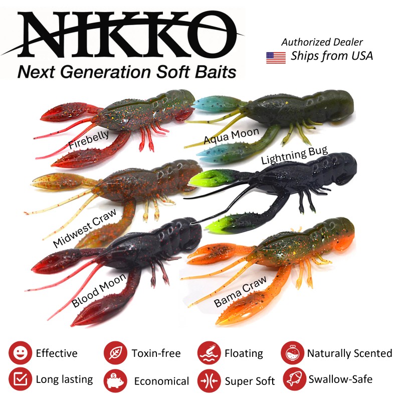 This version of Nikko craw features a new softer material with new colors to cover almost every situation.
