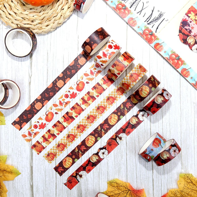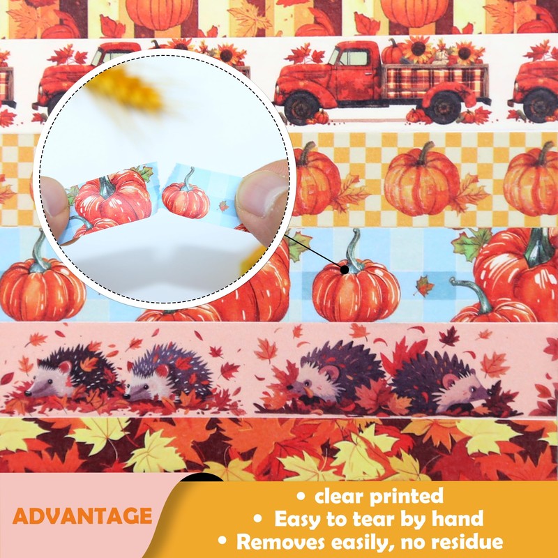 - 【Perfect sizes】12 rolls of innovative autumn harvest series washi tape set. Including 0.59 inches (15mm) x 12 rolls in width. Each roll of tape is 9.8 feet (3m) in length. The size is long enough for daily and craft use.