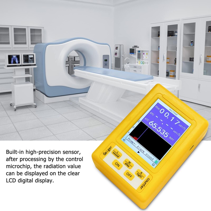 • Built-in high-precision sensor, after processing by the control microchip, the radiation value can be displayed on the clear LCD digital display.