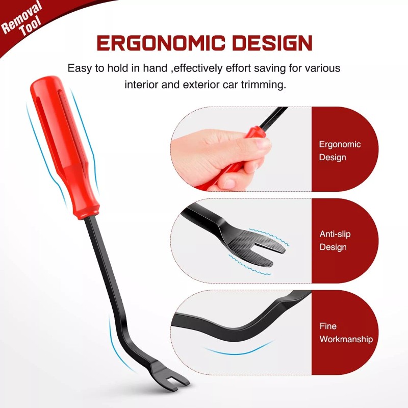 PREMIUM GRADE NYLONThis tool set is made of impacted resistant nylon fiber material with high level craftsmanship, tougher than common nylon one, it’ s non-toxic designed. | Tough Fastener Removal ToolAllow you to quickly and easily remove car door panel and upholstery clips without causing damage to them. | Removable and ReusableHolds securely but is easily removed without damaging it for reuse. Just pop the post out with a fastener remover. |