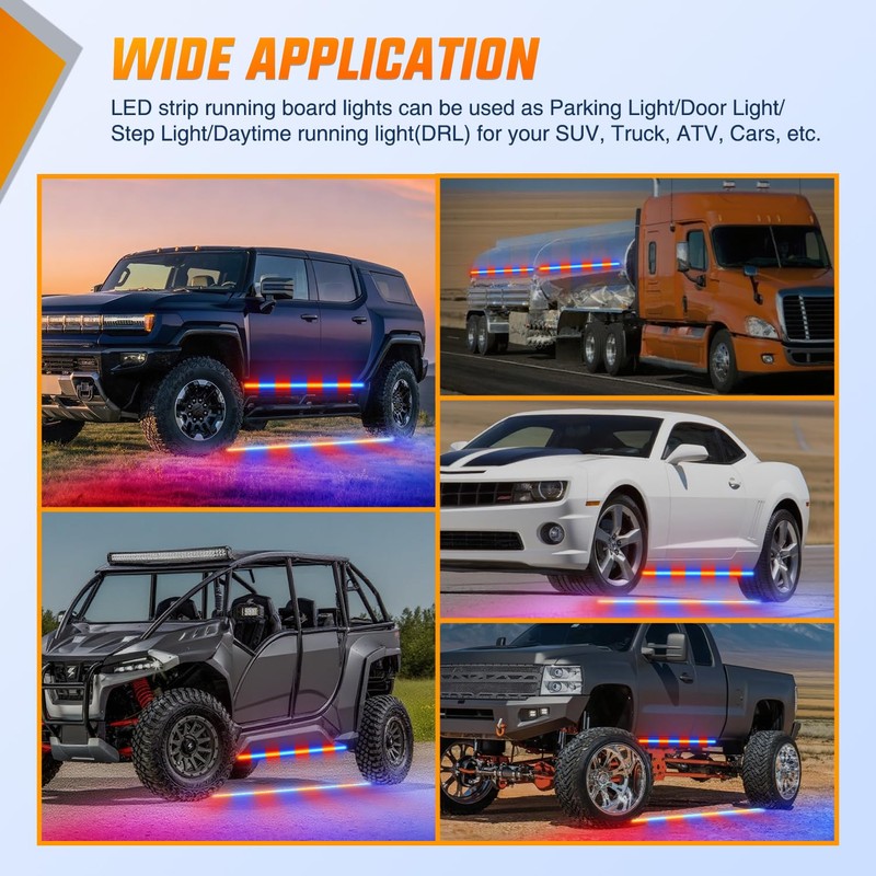 - Safety & Reliability: Nilight 2PCS 70 inch Running Board Strobe Light Strip with up to 864 high brightness LEDs provides excellent visibility day or night, ensuring that others can easily notice it, greatly improving driving safety. Turn heads and stay energized, even in stormy weather!