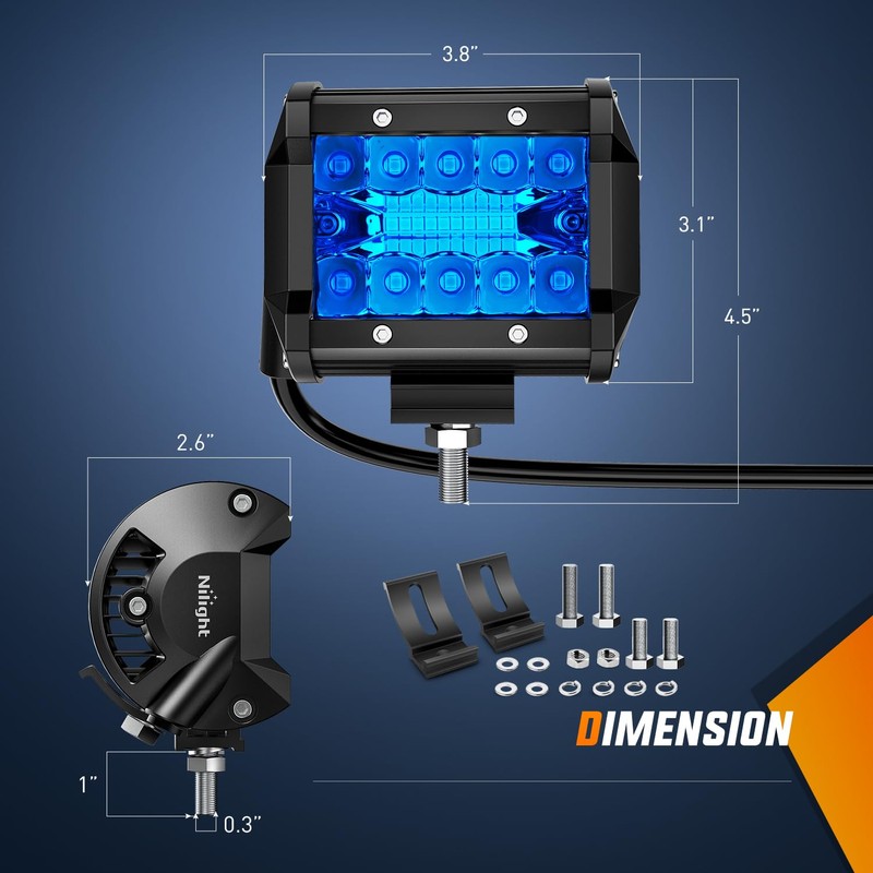 • Blue Super Bright combo beam: Adopted 20pcs 3w led chips, appropriate combination of spot beam and flood beam for wide spread and further distance illumination, allowing you to see the front and rear cars clearly in bad weather such as night or heavy fog, light up your night fishing, night ride or any other night activities