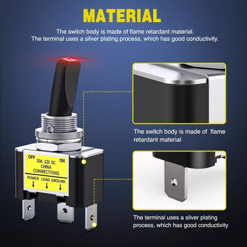 • Red LED Indicator: When our LED toggle switch is turned on, it will emit a bright red light, allowing you to easily find its position at night.