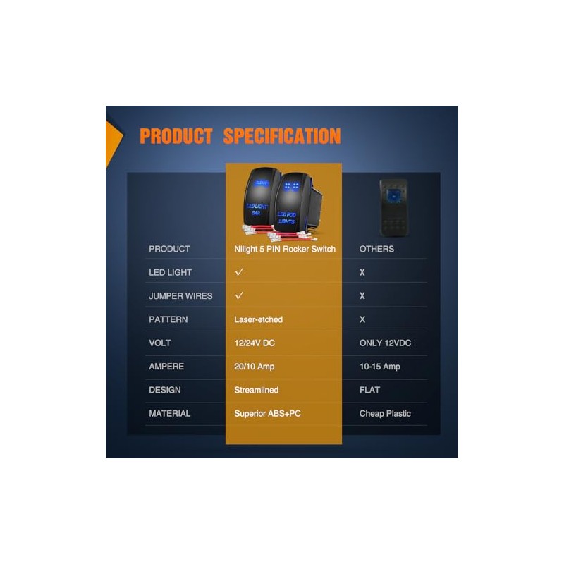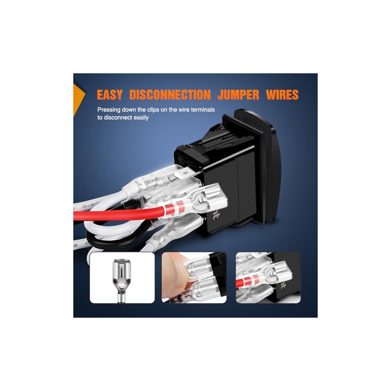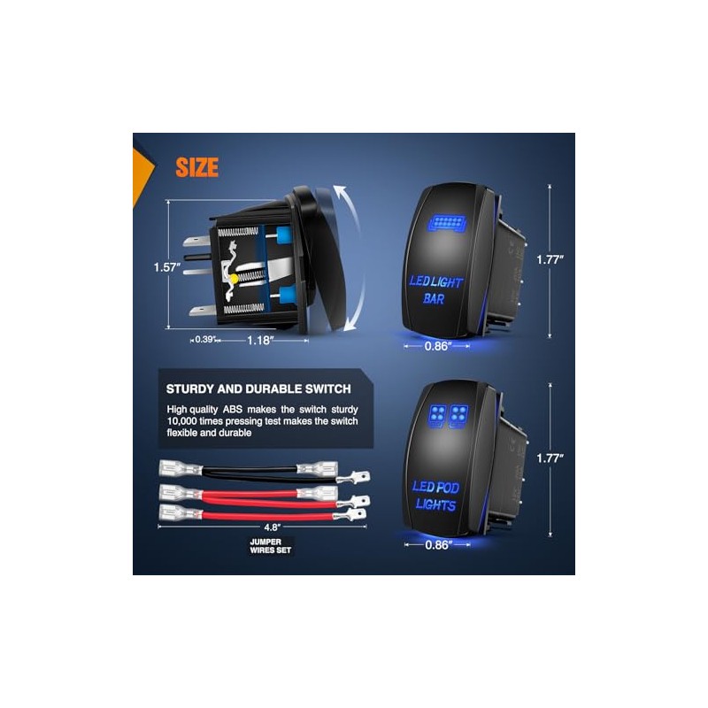 - Package Includes: 1x 5 pin Led Pod Lights Rocker Switch, 1x 5 pin Led Light Bar Rocker Switch,2x jumper wires set, A wiring diagram