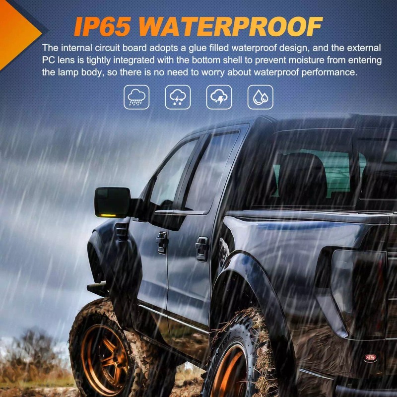 - Material & Waterproof: Equipped with PC lens and housing with wear-resistant and impact resistant features, effectively protecting the LEDs and circuit board inside the lights. The circuit board is filled with glue to achieve perfect waterproof performance