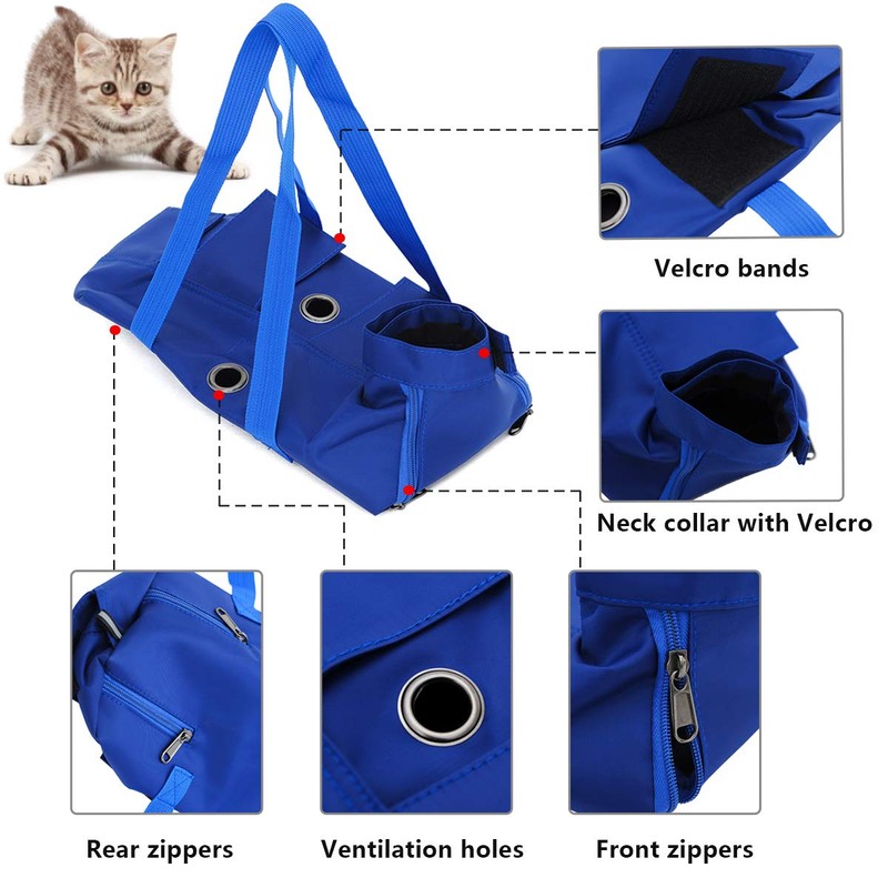 Features:Anti-Bite, Anti-Scratch.The grooming restraint bag is a strong nylon bag for pets (cats, dogs and rabbits).